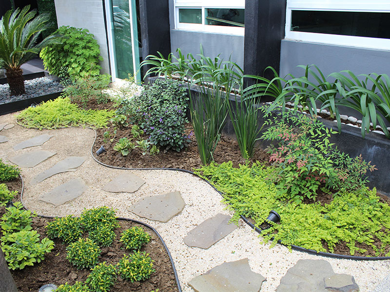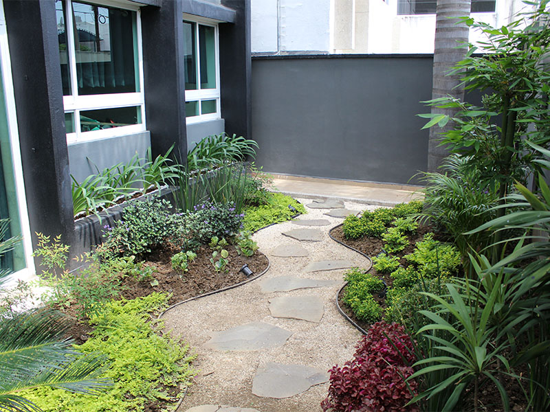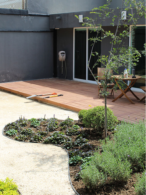 ¿Jardín sin pasto? ¡Claro que se puede! En esta remodelación se concibió un jardín que transmitiera cierta tranquilidad y que mejor tema que un jardín zen, debemos tener en cuenta que si hablamos de estilos determinados de jardines no podemos encasillar nuestra mente en si cumple o no con los requisitos para ser cierto tipo de jardín, la “adaptación del estilo” a las necesidades es lo que predomina en este jardín .